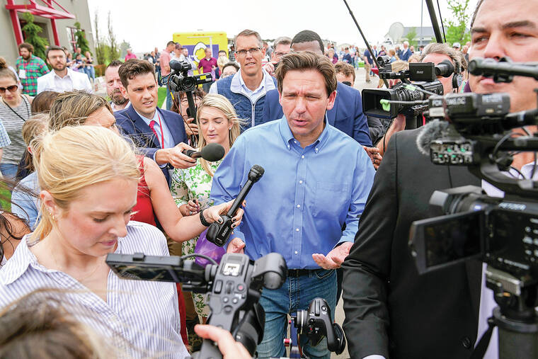 DeSantis has burnished his reputation as a conservative governor willing to push hard for conservative policies and even take on a political fight with Disney, which he highlighted in Sioux Center. But so far, he hasn’t shown the same zest for taking on Trump, who has been almost singularly focused on tearing down DeSantis for months.