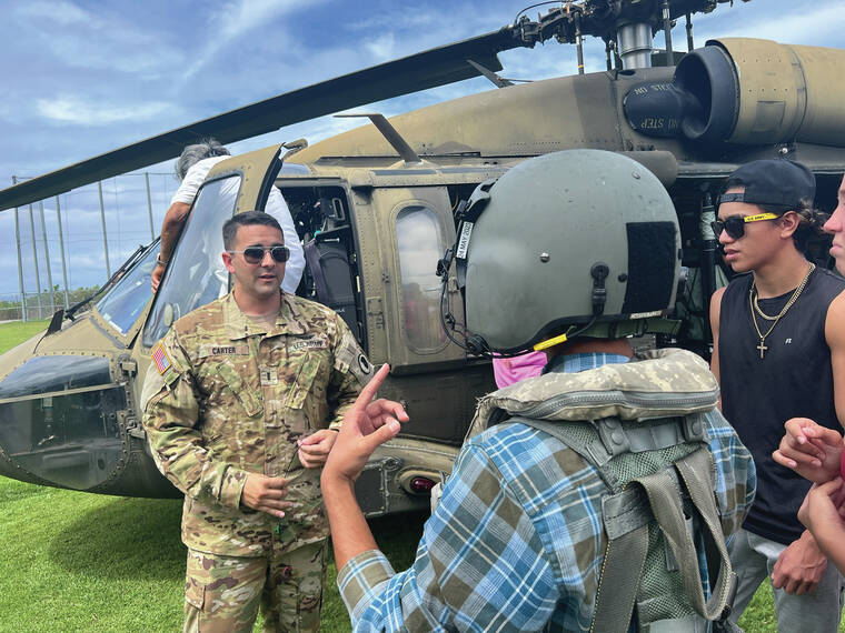 She and dozens of other students watched as a team of Hawaii Army National Guard recruiters, including a 2007 graduate of the school, Chief Warrant Officer 3 Wesley Carter, stepped from the aircraft and invited students over for an informal tour.