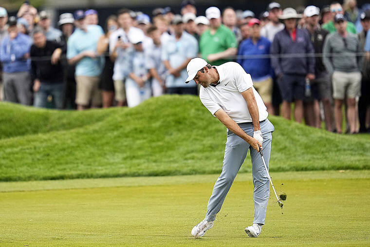 Scheffler delivered a mix of birdies and great recoveries from wet, nasty rough Friday until he couldn’t escape one last errant tee shot on the 18th that cost him the lead, but certainly did little to dim his optimism.