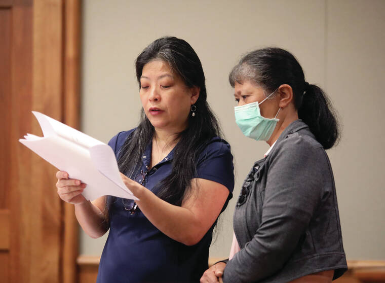 Mei Qin Chen appeared without an attorney alongside a Mandarin language interpreter. Hilo District Judge Kanani Laubach instructed Chen, who didn’t enter a plea, to fill out forms with the assistance of the interpreter, Esther Atwell, requesting the services of the Office of the Public Defender.