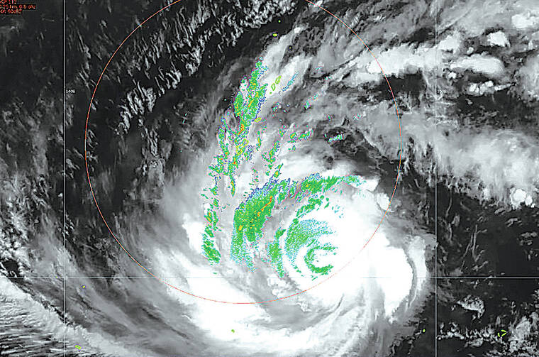 A storm surge of 4 to 6 feet (1.2 to 1.8 meters) above the normal high tide was expected and could reach up to 8 feet (2.4 meters). Surf was expected to build sharply in the next day or two along south- and east-facing reefs, with dangerous surf of 15 to 25 feet (4.5 to 7.6 meters) Tuesday afternoon into Wednesday, the weather service said.