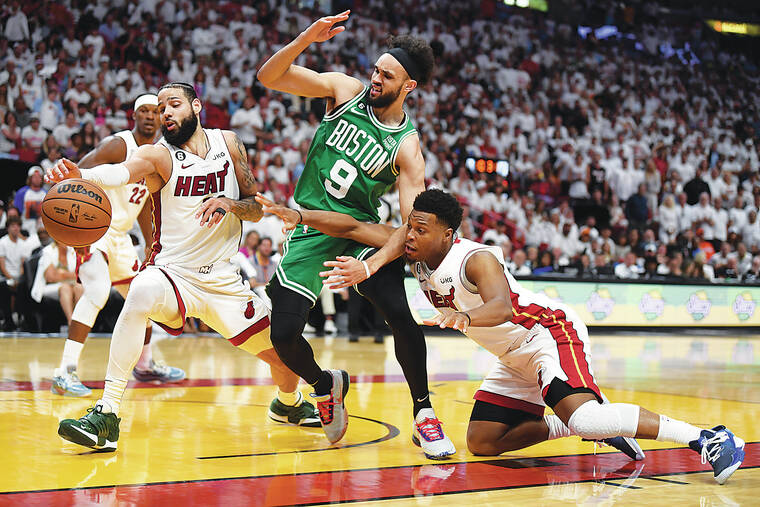 Butler scored 24 points and Caleb Martin had 21 for the Heat, who are trying to pull off their own improbable trek to the title series by being only the second No. 8 seed to make the NBA Finals. They’ve now lost as many games this week — three — as they had in their first 14 playoff games this spring combined on the way to ousting No. 1 Milwaukee, then No. 5 New York and taking what was supposed to be an insurmountable 3-0 lead over the second-seeded Celtics.