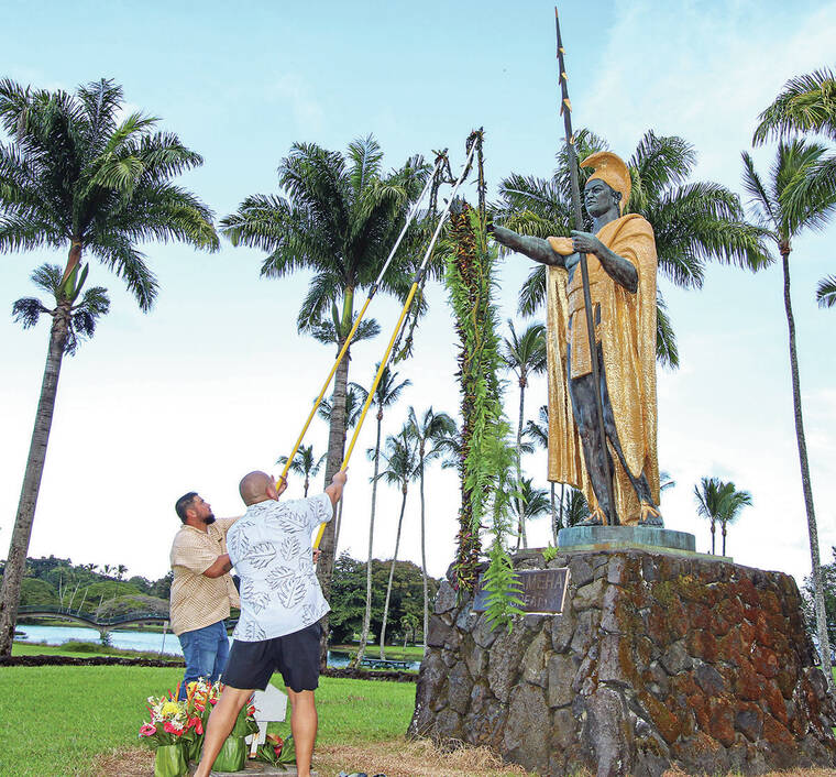 At 9 a.m. today, the Royal Order of Kamehameha I will host another ho‘okupu and lei draping at the Hilo statue on Kamehameha Avenue. The lei draping will be followed by a day of entertainment from musicians and halau. The community is welcomed to bring lei and other gifts as offerings.