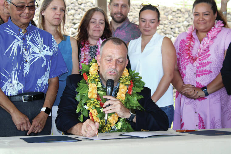 Gov. Josh Green used West Hawaii as a pulpit on Thursday to address state problems and sign several bills into law.