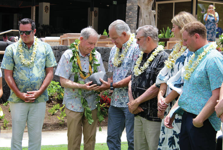 Following speeches, lineal descendants of the land, Ku’ulei Keakealani and Ana Bertlemen, led guests in a ceremonial passing of the pohaku and ‘Aha Lei Piko Ceremony, reaffirming the sense of place the property holds.