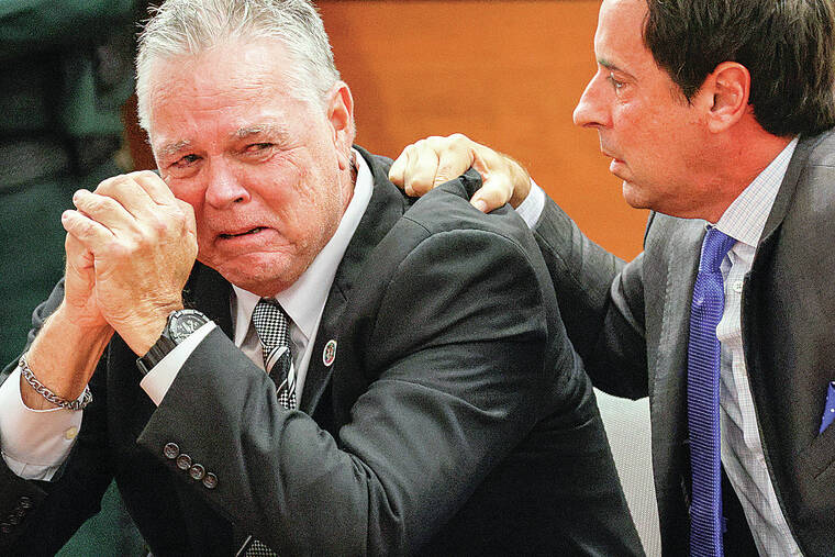 Former Broward County Deputy Scot Peterson wept as the verdicts were read, while the fathers of two students murdered at Marjory Stoneman Douglas High School on Feb, 14, 2018, stared straight ahead and quickly left the courtroom. The jury had deliberated for 19 hours over four days.