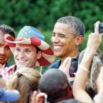 2010: Obama brings 1,200 service members to the South Lawn for a barbecue. The father of a July Fourth baby, Malia, he would joke that she always thought the capital fireworks were for her.
