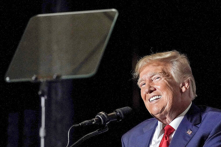 Trump spoke for 80 minutes, starting with the agriculture theme but blending his attacks on DeSantis and President Joe Biden with asides on such subjects as Russian President Vladimir Putin’s invasion of Ukraine — “I told him: Don’t do it.” — an impression of French President Emmanuel Macron and a dismissal of climate change science, saying during the hottest week in history that global warming is just going to give more people beachfront property.