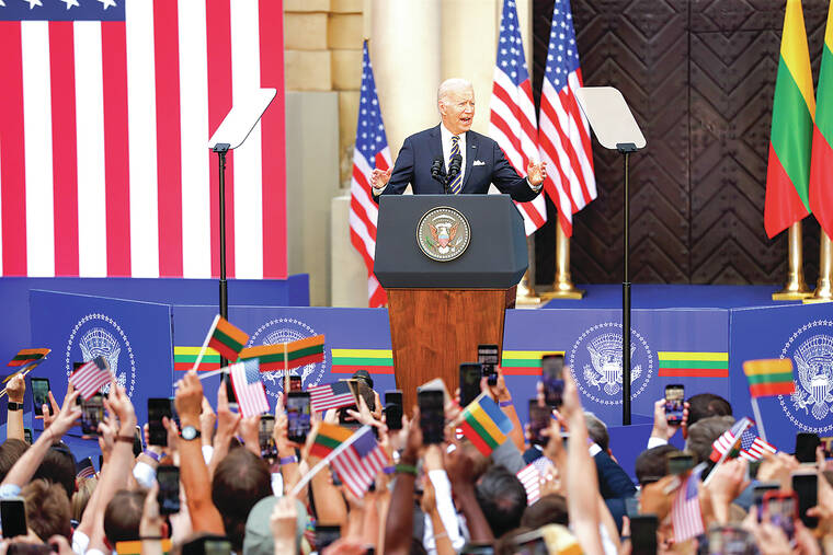 VILNIUS, Lithuania (AP) — President Joe Biden pledged Wednesday that western allies “will not waver” in defense of Ukraine, casting the struggle against Russian aggression as one of the world’s central challenges requiring a broad coalition of countries to stand in defense of freedom.