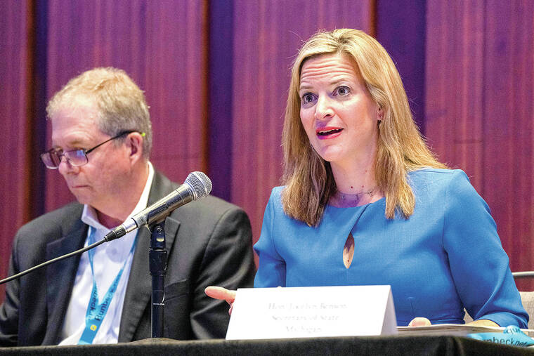 Colorado Secretary of State Jena Griswold said she convened a working group in her office to game out potential risks, after a 2020 presidential election that was marred by false claims and attacks on voting. Michigan Secretary of State Jocelyn Benson said state and federal regulations requiring disclosures of AI-generated content are needed along with boosting public awareness.