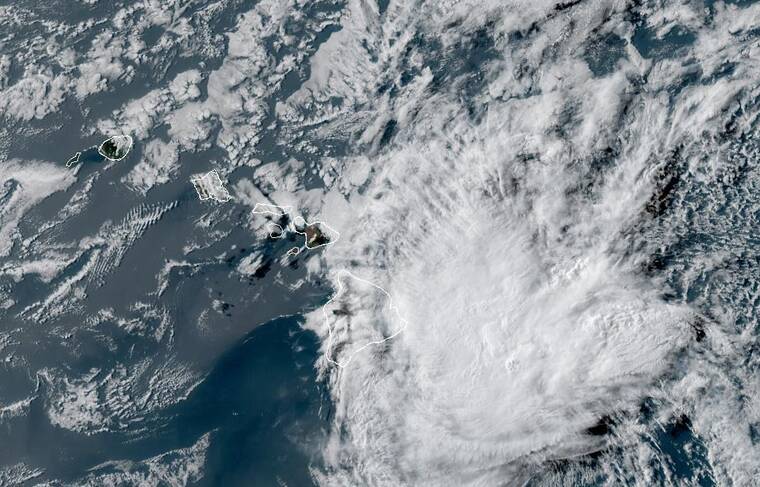 At 8 a.m., the storm was about 330 miles southeast of Hilo, packing maximum sustained winds of 45 mph with locally higher guests. Tropical-storm-force winds extend outward up to 105 miles from the center.
