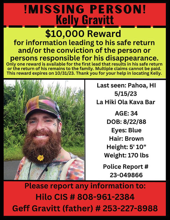 Geff Gravitt said there are several rumors regarding his son’s disappearance. He also said he has received videos, audio recordings and text messages that indicate a possible connection to Cinderland, a self-described “eco-village” roughly 20 miles southeast of Hilo.