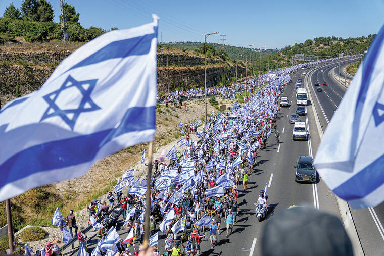 Netanyahu’s announcement, issued well after midnight, came a week after he was hospitalized for what was described as dehydration. It also came after a tumultuous day that saw some of the largest protests to date against the judicial overhaul plan.