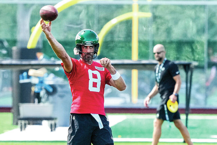 FLORHAM PARK, N.J. — The loud “Aaron! Rodgers!” chants started almost as soon as the New York Jets quarterback stepped on the practice field.
