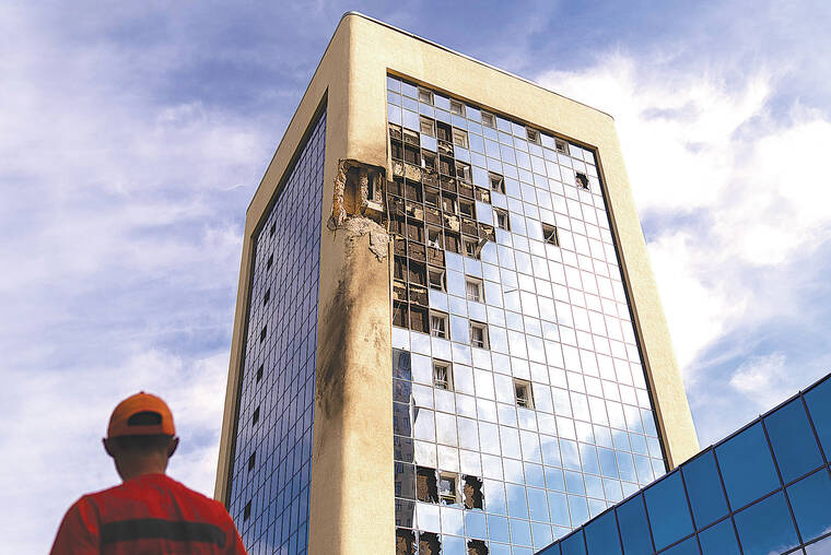 KYIV, Ukraine — Russian drones on Wednesday hit a Ukrainian port city along the border with Romania, causing significant damage and a huge fire at facilities that are key to Ukrainian grain exports.