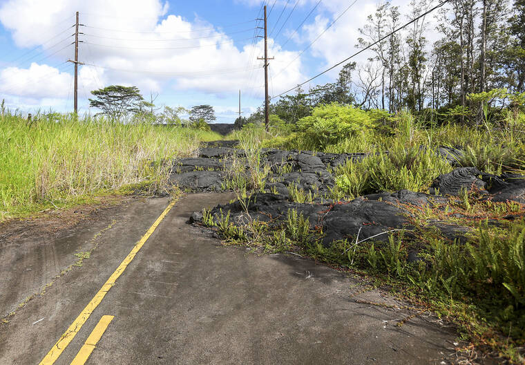 “I had hoped we would see a road two years back or more,” said Deb Smith, whose Kapoho home was destroyed in the eruption and is currently living in an adjacent lot isolated by lava. “We’re still hiking across lava in and out. … I’m landing (Friday), I’m going to be picked up at the airport, and I’ll have to hike two miles across lava in the dark.