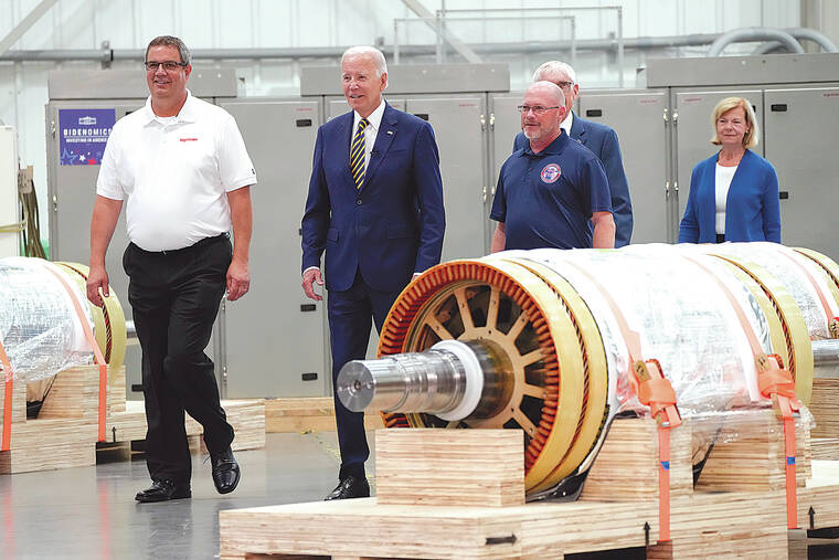 MILWAUKEE (AP) — On the heels of a fourth indictment for Donald Trump, President Joe Biden focused on manufacturing jobs in a speech at a Wisconsin factory — putting his ideas for growth up against his Republican rivals in a bid to win over voters in a key state in next year’s presidential election.