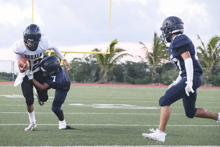 The fourth quarter saw mostly defensive highlights on both sides. Kohala’s Aukai Reyes notched two interceptions, and KSH’s Paliku Nachor made a TFL, a sack and a pass deflection.