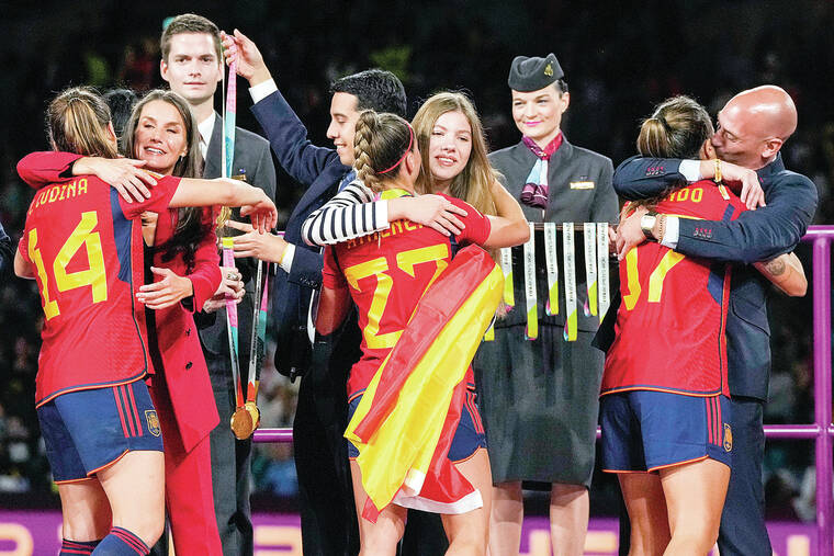 MADRID — The leader of Spain’s soccer federation marred the country’s Women’s World Cup victory after kissing a player on the lips during the medal ceremony, drawing criticism for inappropriate conduct in a sport that has struggled to overcome sexism.
