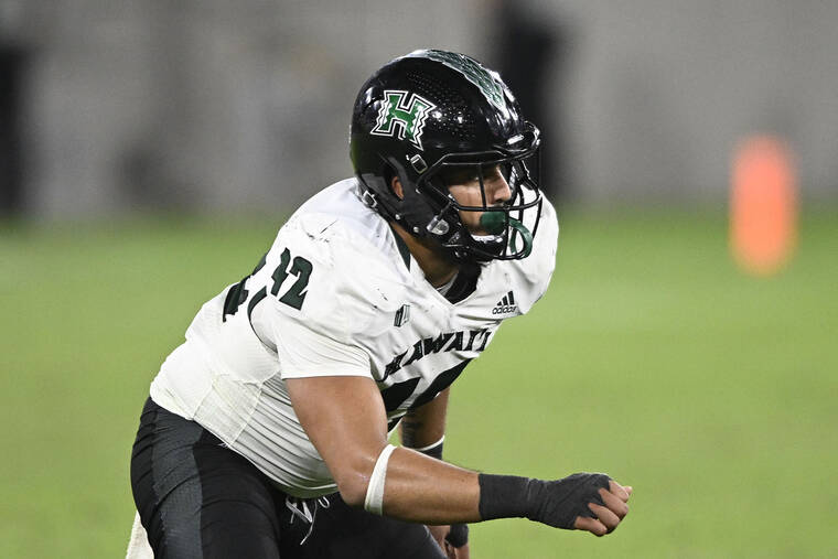 UH rush end Jonah Kahahawai-Welch said national support for Maui “means a lot. I have a few teammates who have family (on Maui). Their family is my family. We’re all one big ohana over here.”