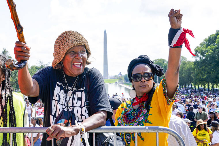 WASHINGTON — Thousands converged Saturday on the National Mall for the 60th anniversary of Rev. Martin Luther King Jr.’s March on Washington, saying a country that remains riven by racial inequality has yet to fulfill his dream.