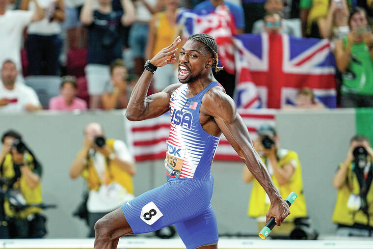 Noah Lyles and Sha’Carri Richardson anchored their 4×100 teams to victories Saturday, giving the U.S. its first sweep of the short relays at world championships since 2007 and a boost of confidence heading into next year’s Olympics.