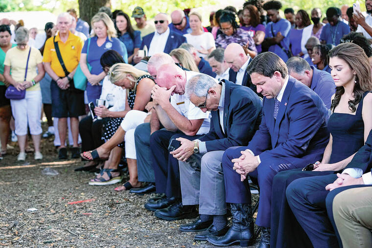 JACKSONVILLE, Fla. — Hundreds of people gathered Sunday at prayer vigils and in church, in frustration and exhaustion, to mourn yet another racist attack in America: this one the killing of three Black people in Florida at the hands of a white, 21-year-old man who authorities say left behind white supremacist ramblings that read like “the diary of a madman.”