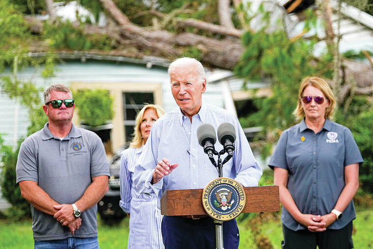 At Suwannee Pineview Elementary School, where the Bidens were briefed on the storm damage, local officials offered praise for early disaster declarations by the White House and the quick flow of federal aid. “What the federal government is doing … is a big deal,” Scott said.