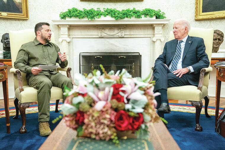 The serious tone was evident earlier, too, at the Pentagon, where Defense Secretary Lloyd Austin greeted Zelenskyy without the usual ceremonial band and other fanfare.