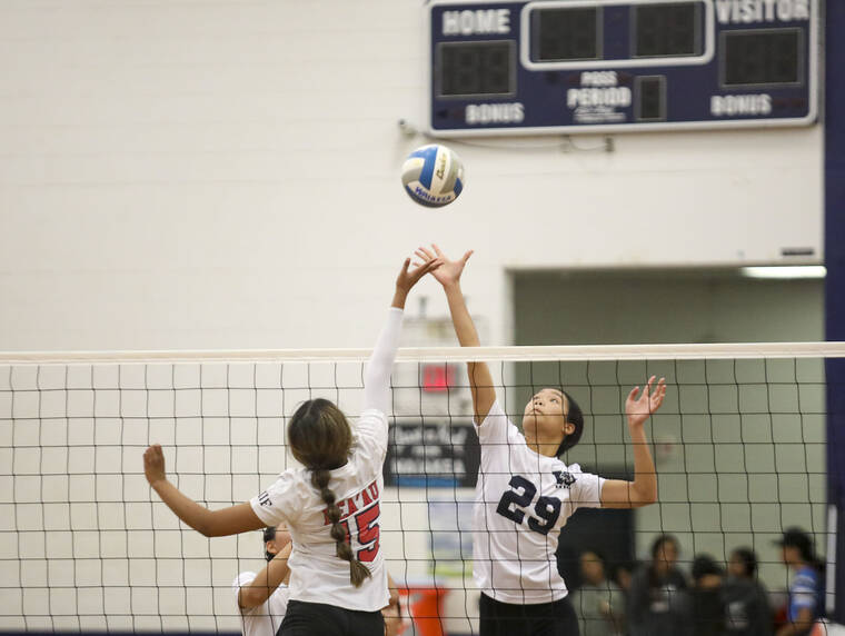 Mia Polloi and Keanu Huihui were instrumental in stopping Hilo’s spikes, each notching seven blocks. Honma also made four blocks.