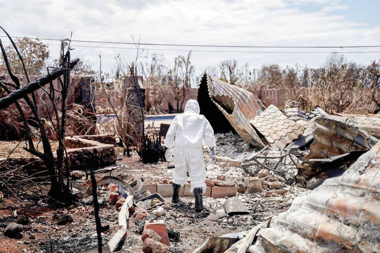 Sifting through the rubble, she found two cow-patterned vessels, part of her extensive collection of bovine figurines. Nearby, her son discovered the blackened remnants of his late grandfather’s pistol from his days as a Lahaina policeman from the late 1940s to 1970s. There was no sign of the beloved cat, Kitty Kai, that used to greet her when she came home from work and church.