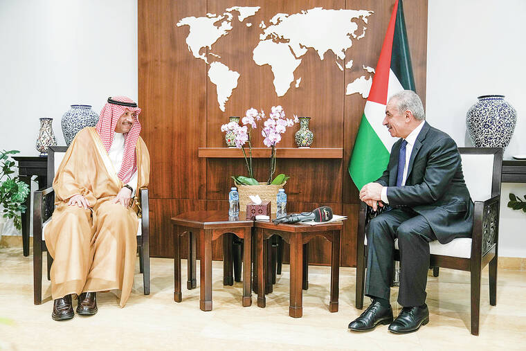 During his visit to the Palestinian Authority on Tuesday, Sudairi, the ambassador, said that the Arab Peace Initiative — a Saudi-sponsored proposal from 2002 that called for the establishment of Palestinian state — remained “a cornerstone of any future agreement.”