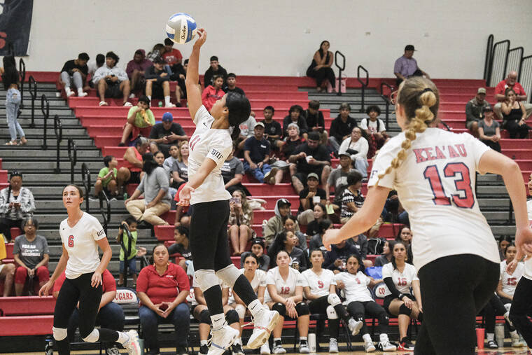 Tuesday saw two BIIF volleyball matches between the isle’s east and northeast sides — Kealakehe HS at Kea‘au HS and Pahoa HS at Honoka‘a HS.