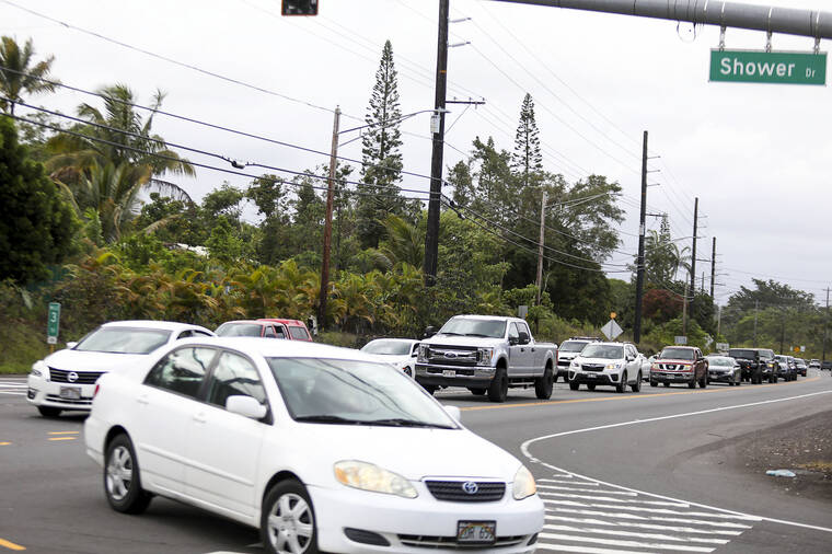 Kelsey Walling/Tribune-Herald file In this 2021 photo, cars turn onto Shower Drive from Highway 130 to head toward Hawaii Paradise Park.