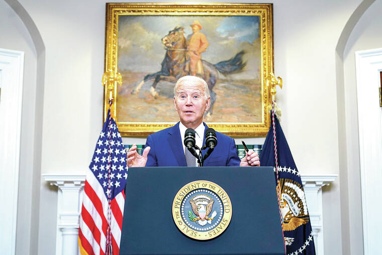 WASHINGTON — President Joe Biden said Sunday that American aid to Ukraine will keep flowing for now as he sought to reassure allies of continued U.S. financial support for the war effort. But time is running out, the president said in a warning to Congress.