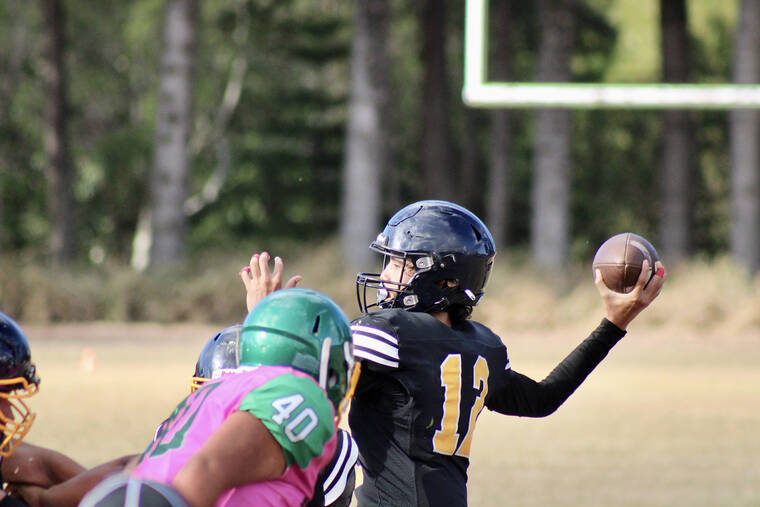 Honoka‘a made its presence known from the opening drive. Mixing up the offense through quick passes and runs, the Dragons marched down the field, leading to a Blaize Jardine rushing touchdown.