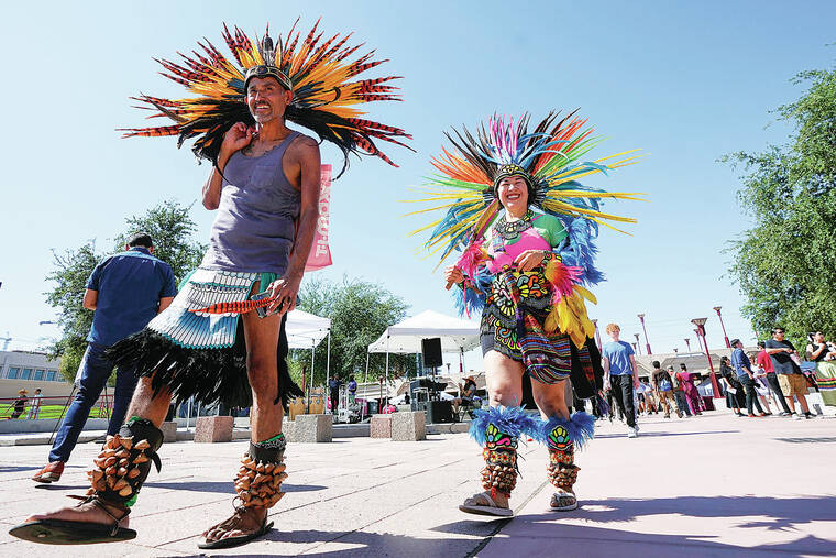 At a gathering in Phoenix where dancers performed in traditional Aztec clothing, Sifa Matafahi said it was an opportunity to “pay respect to Indigenous cultures … to reflect on our past and history, while also acknowledging our cultural presence.”