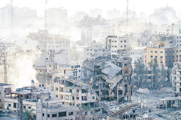 JERUSALEM — Israeli Prime Minister Benjamin Netanyahu joined with a top political rival Wednesday to create a wartime Cabinet to oversee the fight to avenge the gruesome weekend attack by Hamas militants. In the sealed-off Gaza Strip, Palestinian suffering mounted as Israeli bombardment demolished neighborhoods and the only power plant ran out of fuel.