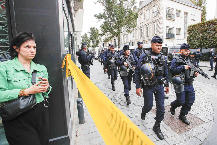 Friday’s attack had echoes of Paty’s slaying on Oct 16, 2020 — also a Friday — by an 18-year-old who had become radicalized. Like the suspect in Friday’s stabbings, the earlier attacker had a Chechen background; police shot and killed him.