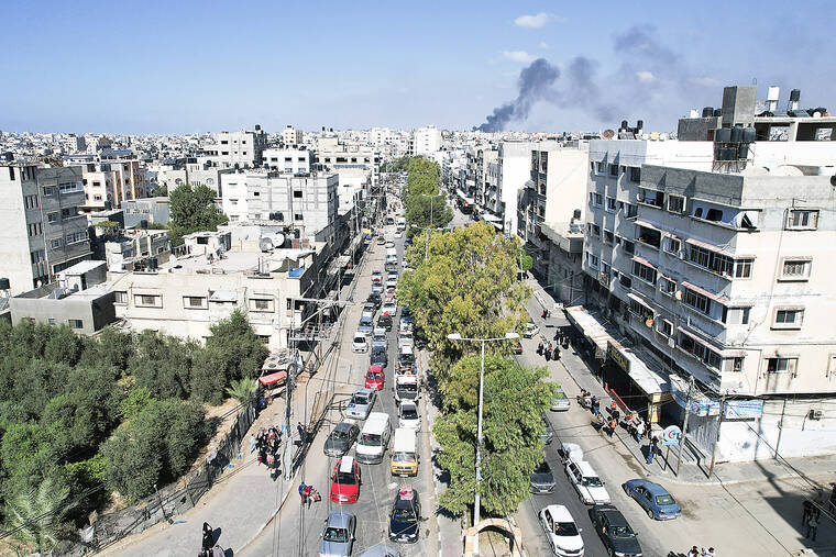 The U.N. warned that evacuating almost half of crowded Gaza’s population would be calamitous, and it urged Israel to reverse the unprecedented directive. As airstrikes hammered the territory throughout the day, families in cars, trucks and donkey carts packed with possessions streamed down a main road out of Gaza City.