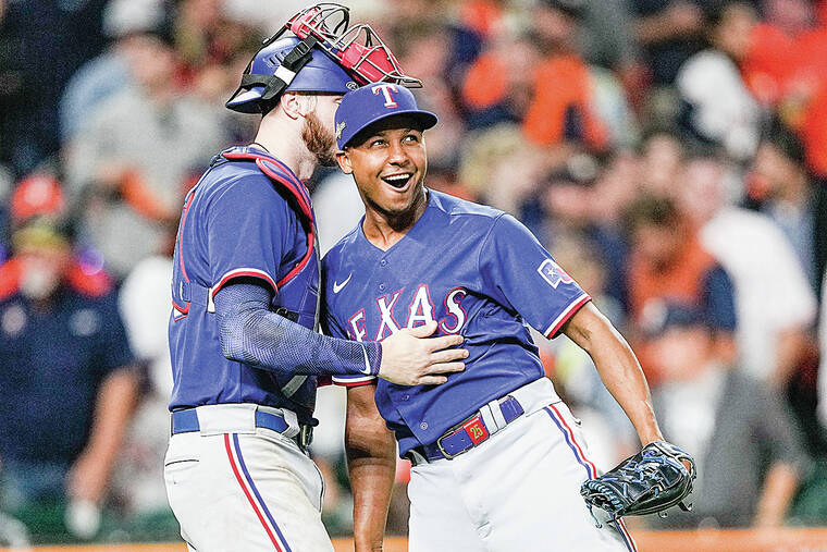Evan Carter, a rookie who just turned 21 on Aug. 29, doubled and scored in the second and made two nifty defensive plays in left field. He’s shined this postseason after not making his major league debut until Sept. 8.