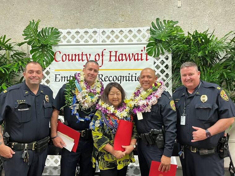 Two Hawaii Police Department officers and a clerical staff member were recognized for their outstanding service during the county’s annual employee recognition ceremony Monday.