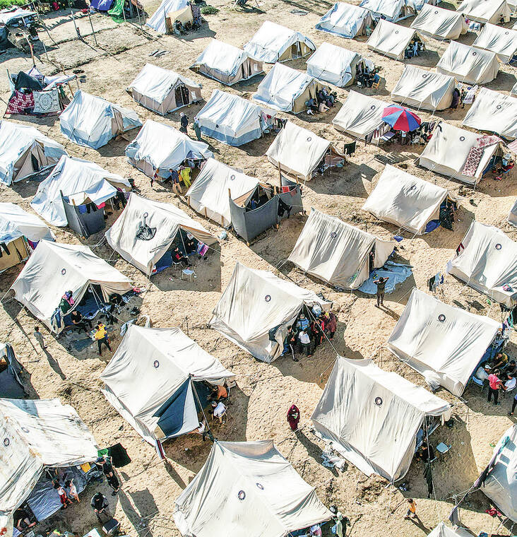 For the first time since Israel captured Gaza from Egypt in 1967, a major tent camp arose to house displaced people. Dozens of U.N.-provided tents lined a dirt lot in Khan Younis.