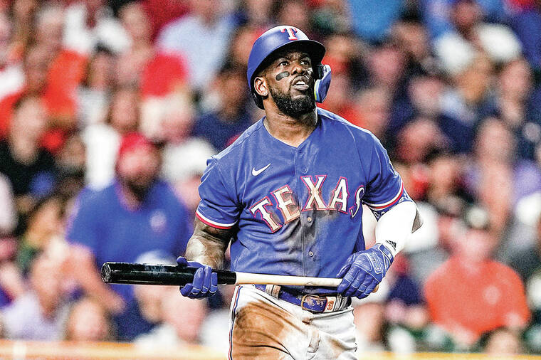 Texas starter Max Scherzer, acquired from the Mets in July, wasn’t great in this one, allowing four hits and two runs with two walks in 2 2/3 innings. But the Rangers took advantage of an early flop by Cristian Javier.