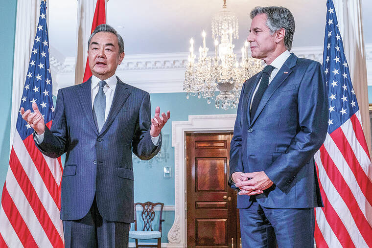 With Blinken looking on, Wang said China will seek consensus and cooperation to “push the relationship as soon as possible back to the track of healthy, stable and sustainable development.”