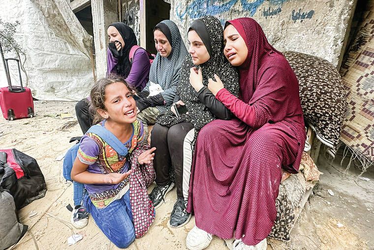 KHAN YOUNIS, Gaza Strip — A barrage of Israeli airstrikes leveled apartment buildings in a refugee camp near Gaza City on Tuesday, and footage showed rescuers pulling men, women and children from the rubble. Israel said the strike destroyed a Hamas command center set up in civilian houses and an underground tunnel network.