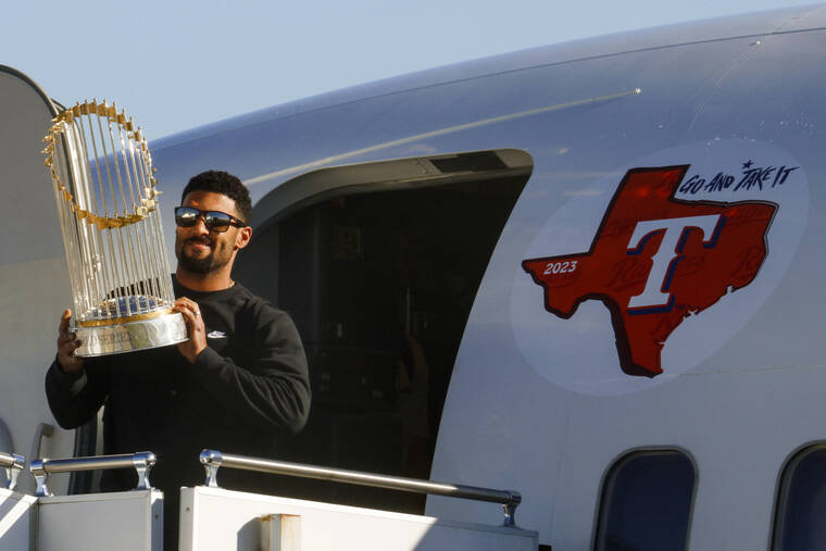 The Rangers arrived home in North Texas on Thursday, with Semien exiting first and hoisting the World Series trophy into the air as he stepped off the plane. By that time, some fans were already staking out spots along the parade route.