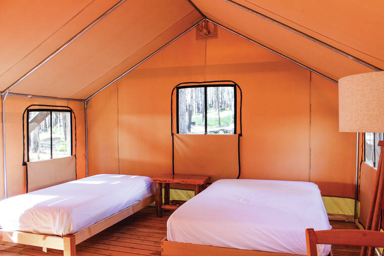 The next night we tried the Marsh Wren, an unheated canvas wall tent amid a bird-themed cluster called The Aviary ($182 per night). All unheated lodging will close for the season on Nov. 1, though there is talk of installing pellet stoves in future years. I wore fleece and sweatpants under blankets and slept comfortably on an autumn night that bottomed out around 50 degrees, but if you run cold, pack thermal base layers.