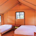 Lodging has electricity for basics like lamps and charging, but cannot handle appliances like hair dryers. There is no in-room running water. Instead, portable bathrooms and sinks are stationed throughout the property, plus two bathhouses with hot showers.