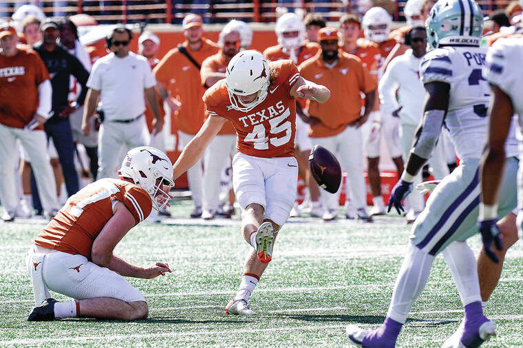 AUSTIN, Texas (AP) — Bert Auburn kicked a 42-yard field goal in overtime and the Texas defense got a key stop on fourth down to earn a 33-30 win over Kansas State in a matchup of Big 12 co-leaders.